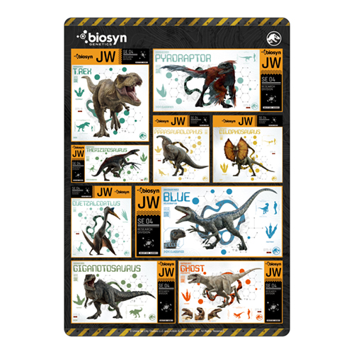 今回登場の主な恐竜たちと、劇中シーンをちりばめた4種類がセットに。